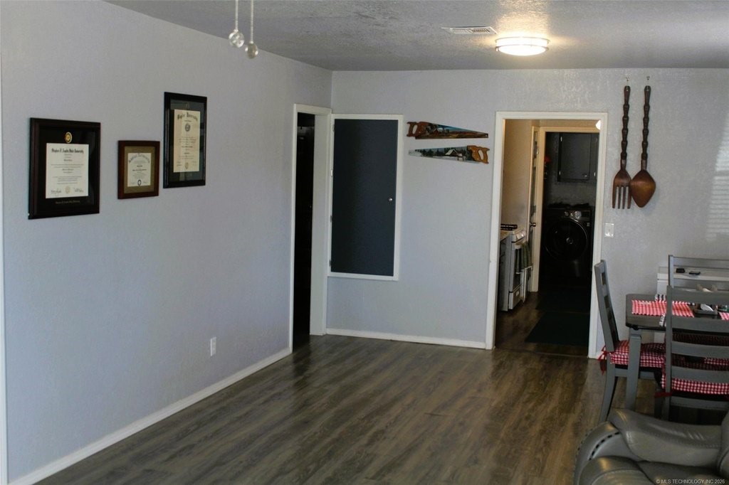 This four-bedroom, one-bath home offers versatility and comfort-ideal for a growing family or anyone needing extra space for a home office. The spacious living room flows seamlessly into the dining area, creating an inviting layout for everyday living and gatherings. The kitchen provides cooking and storage space, making meal prep easy and efficient. Step outside to enjoy the covered front porch or the back patio, both ideal for relaxing or entertaining friends and family.